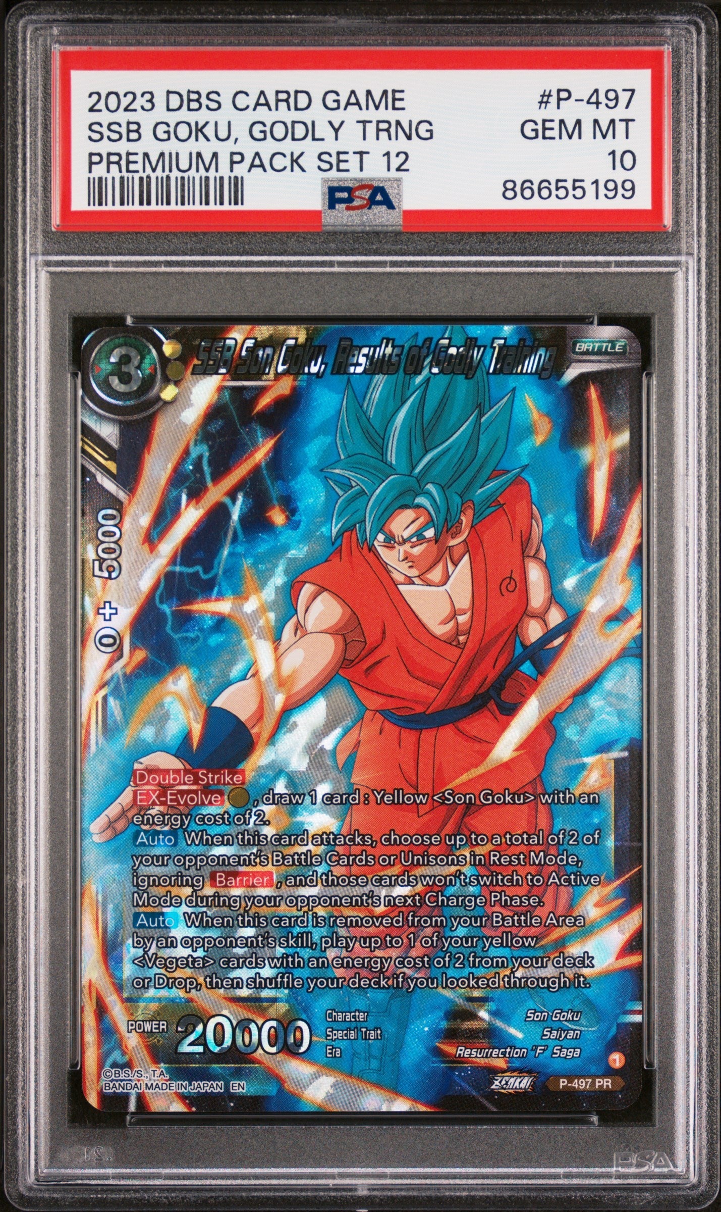2023 DRAGON BALL SUPER 1 WILD RESURGENCE 12 SSB GOKU, GODLY TRNG #P-497 - PSA 10