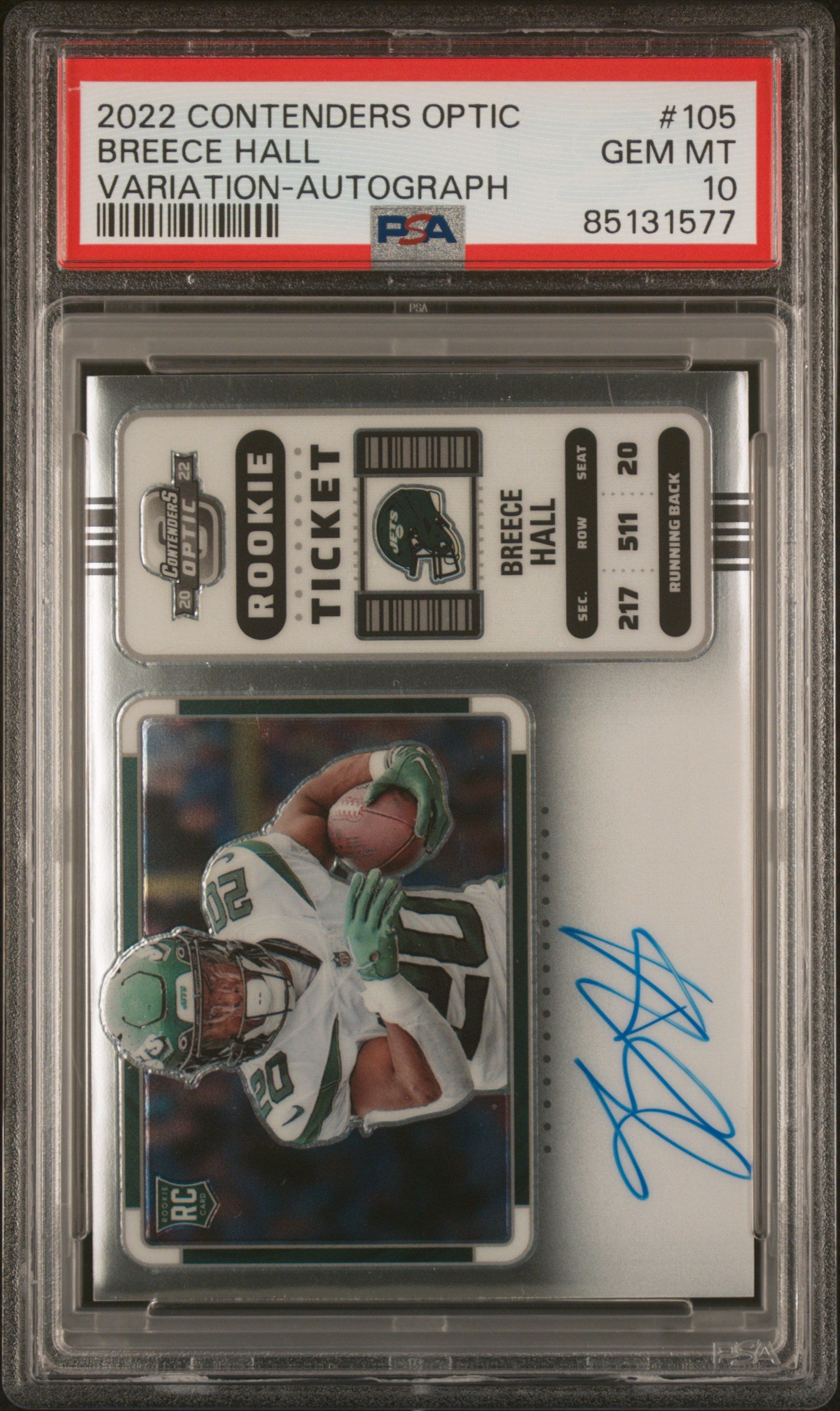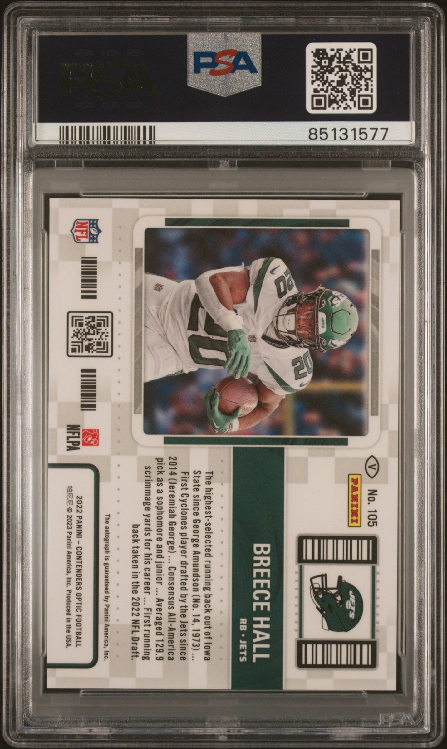 Breece Hall 2022 Panini Contenders Optic #105 Variation-Autograph PSA 10