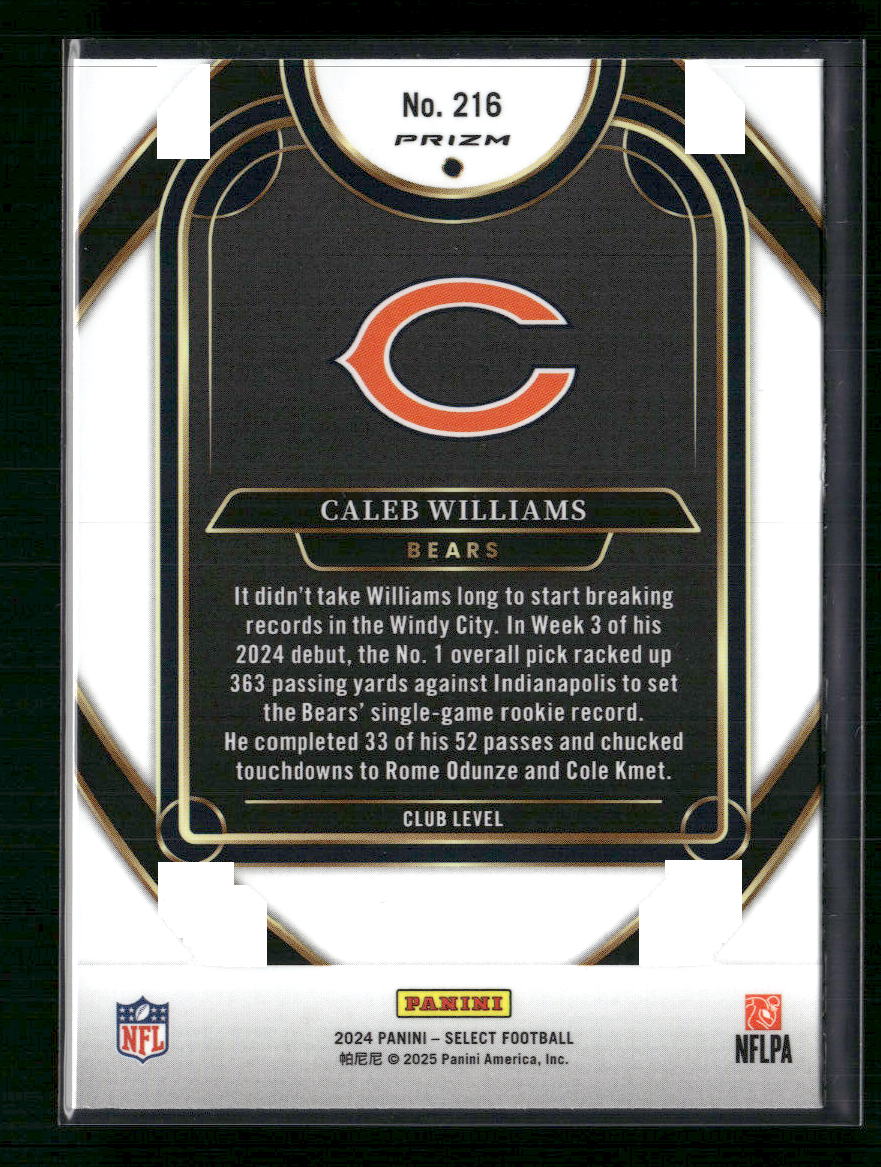 Caleb Williams 2024 Panini Select #216 Red & Yellow Prizm Shock