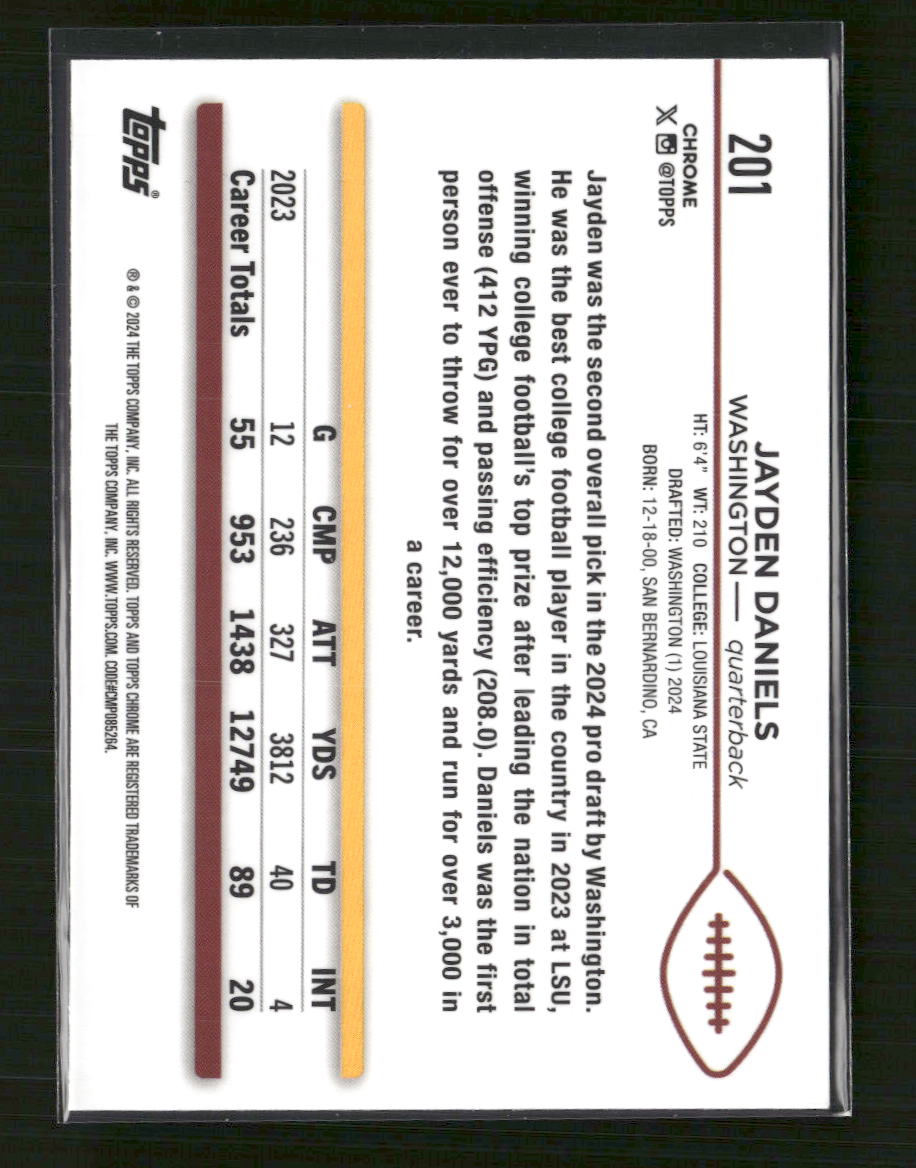 Jayden Daniels 2024 Topps Chrome #201 Sepia Refractor