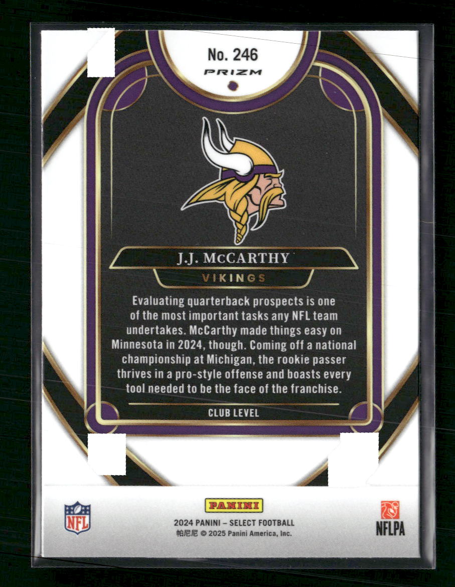J.J. McCarthy 2024 Panini Select #246 Red & Yellow Prizm Shock