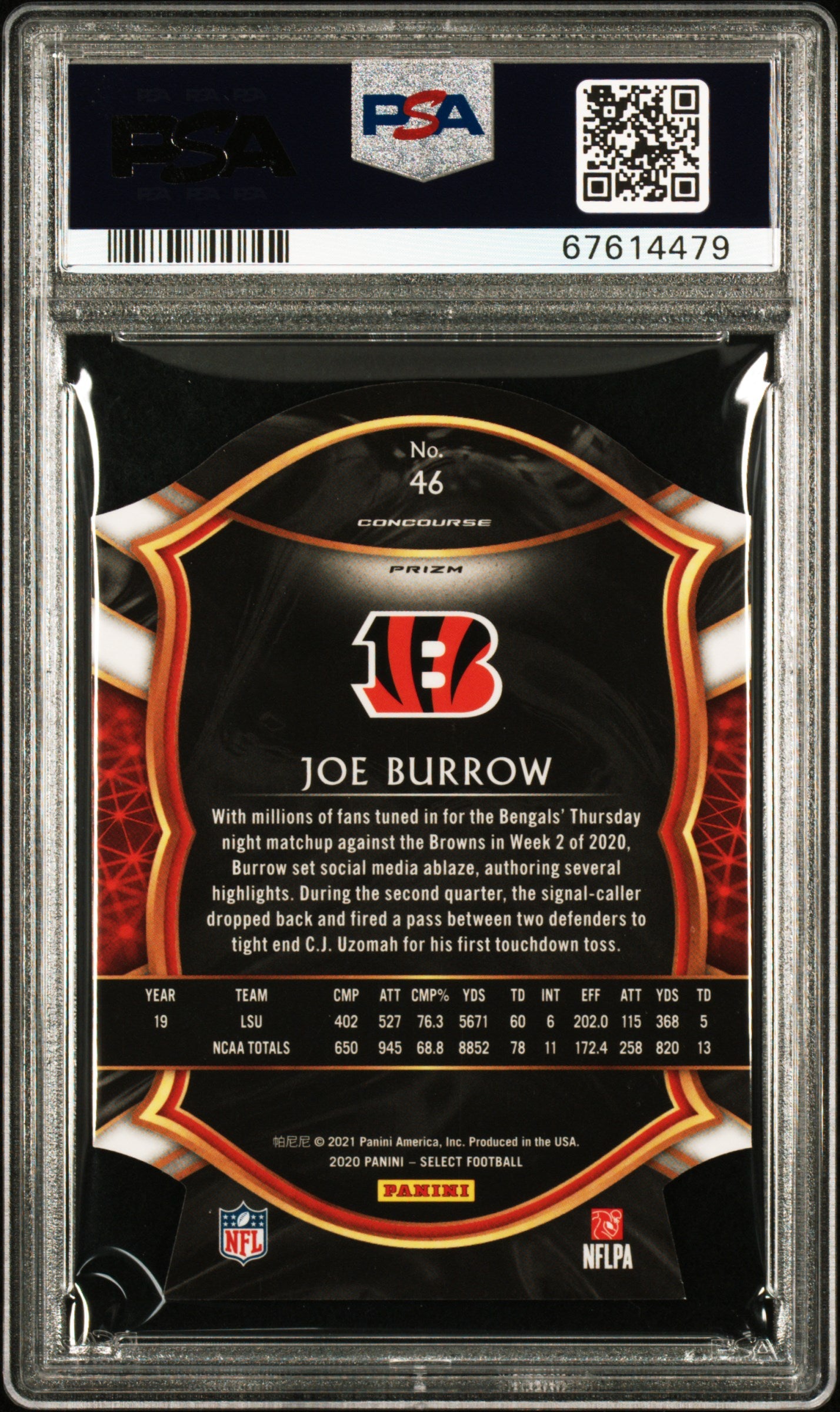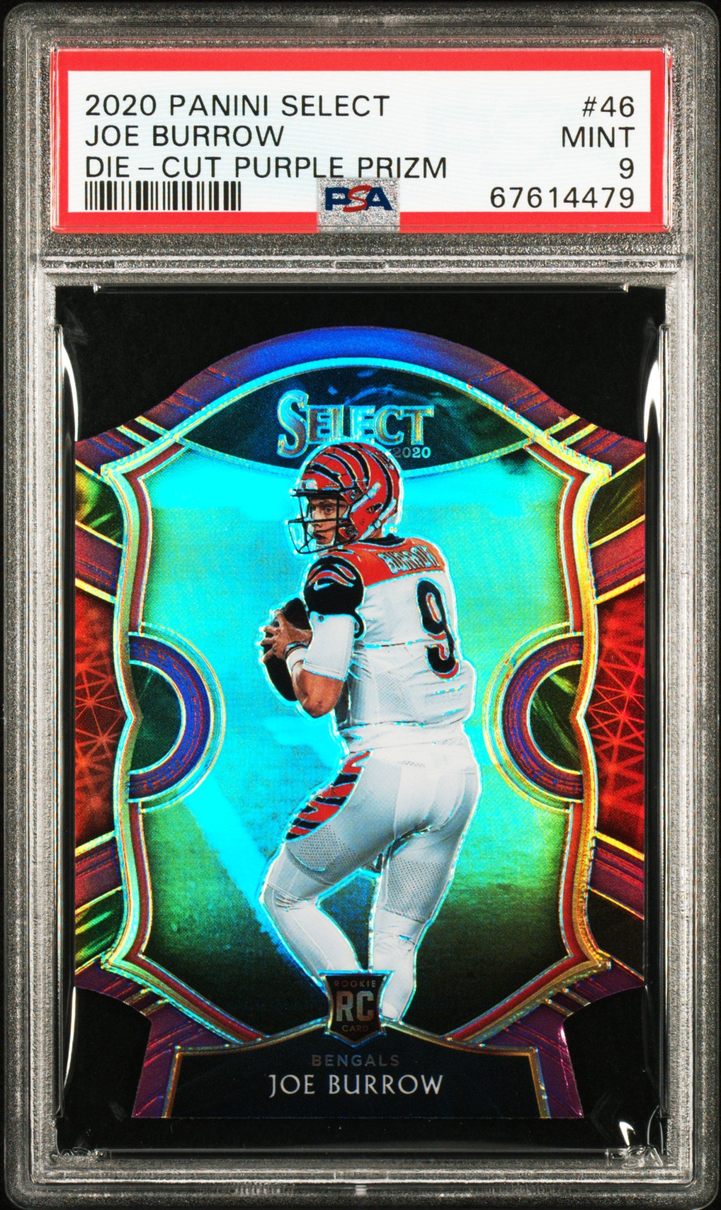 Joe Burrow 2020 Panini Select #46 Die-Cut Purple Prizm PSA 9