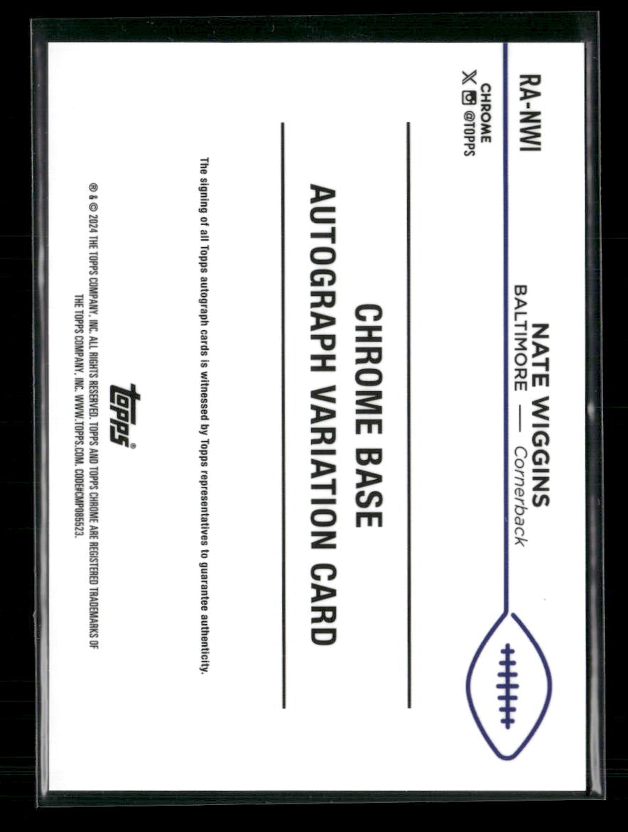 Nate Wiggins 2024 Topps Chrome #RA-NWI Rookie Autographs Green Refractor #/99