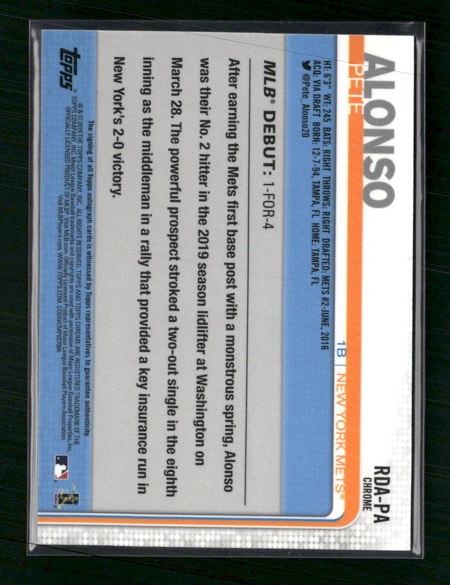 Pete Alonso 2019 Topps Chrome Update #RDA-PA Autographs