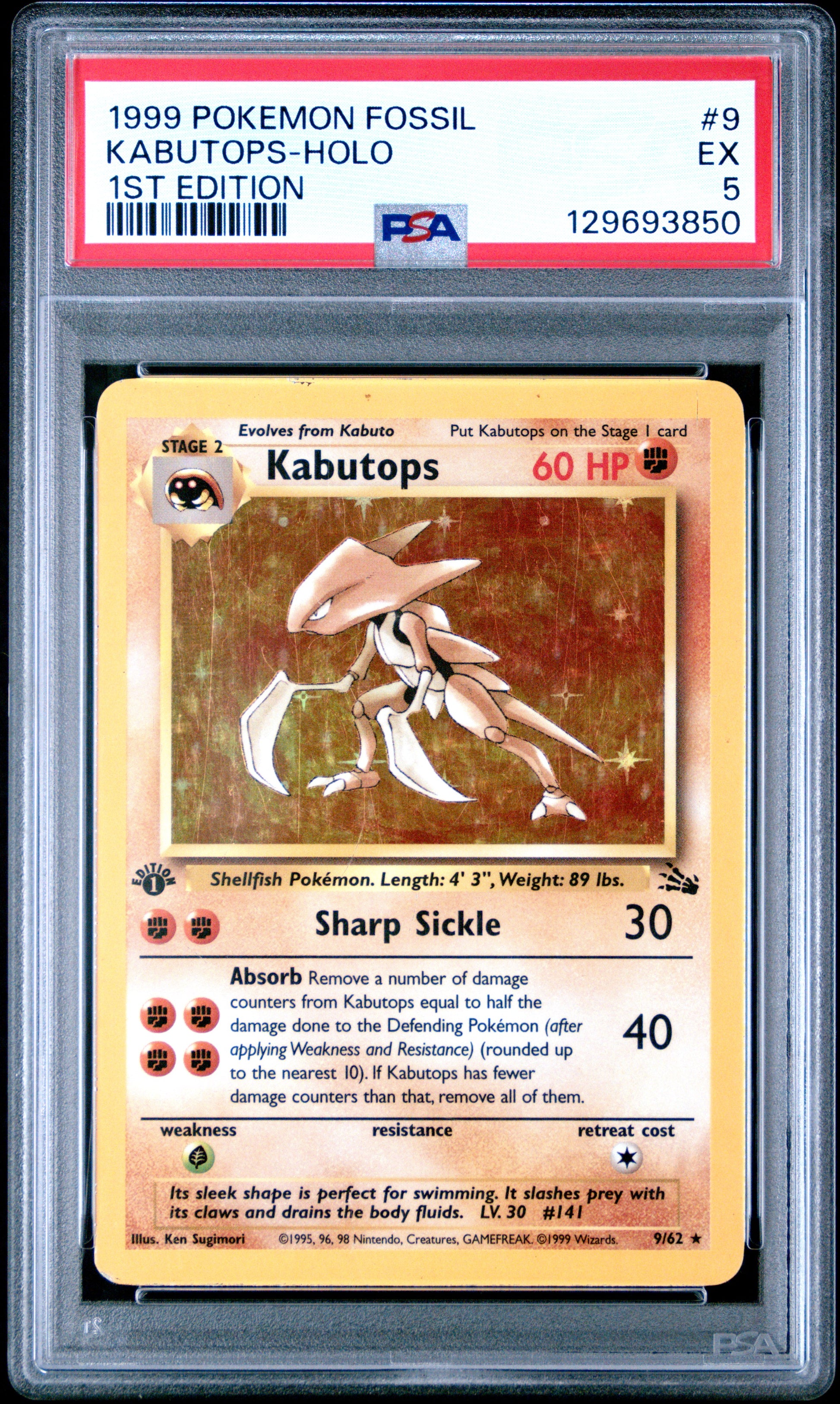 1999 Pokemon Fossil 1st Edition Kabutops-Holo 5 PSA #9