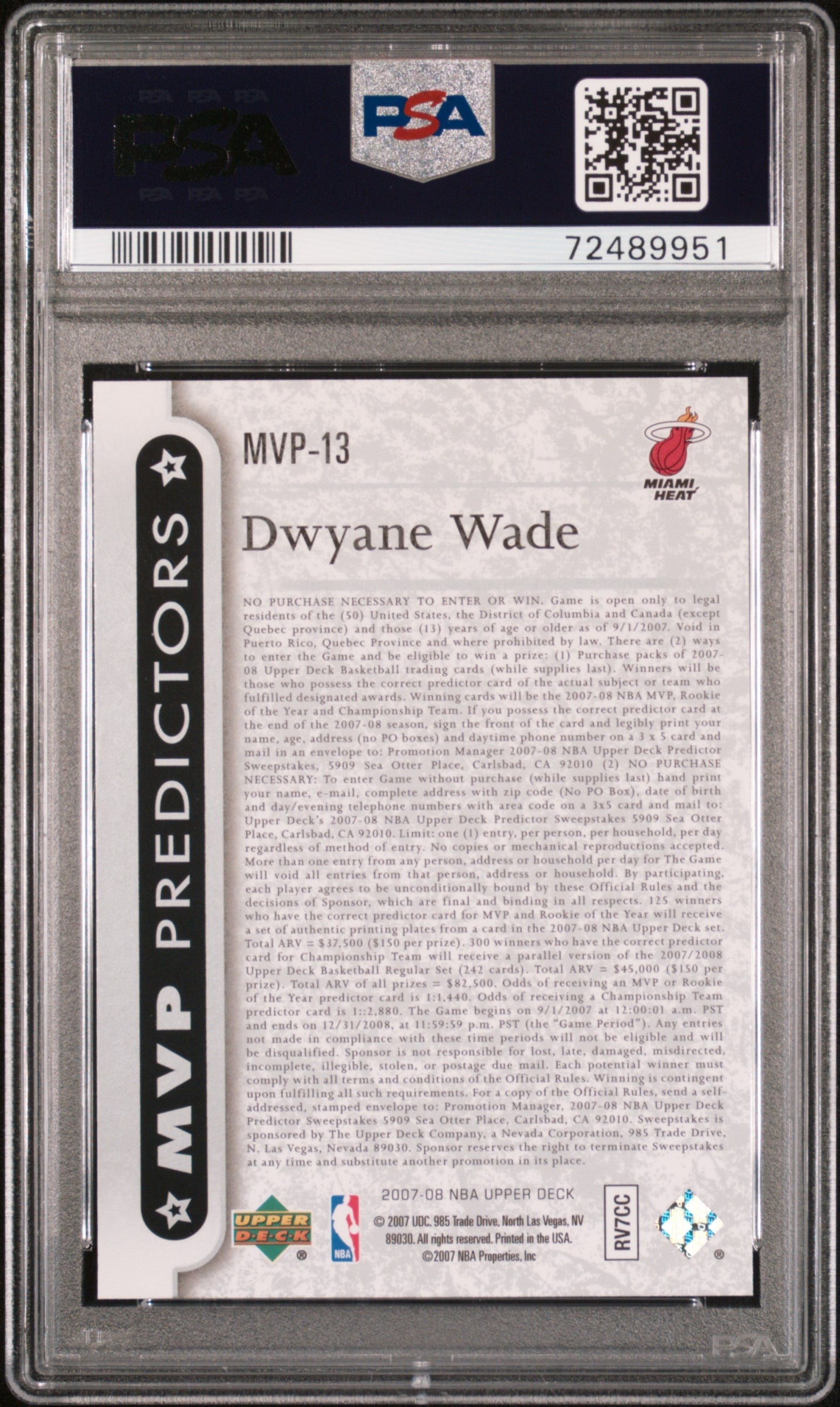2007 UPPER DECK MVP PREDICTORS DWYANE WADE #MVP13 - PSA 10