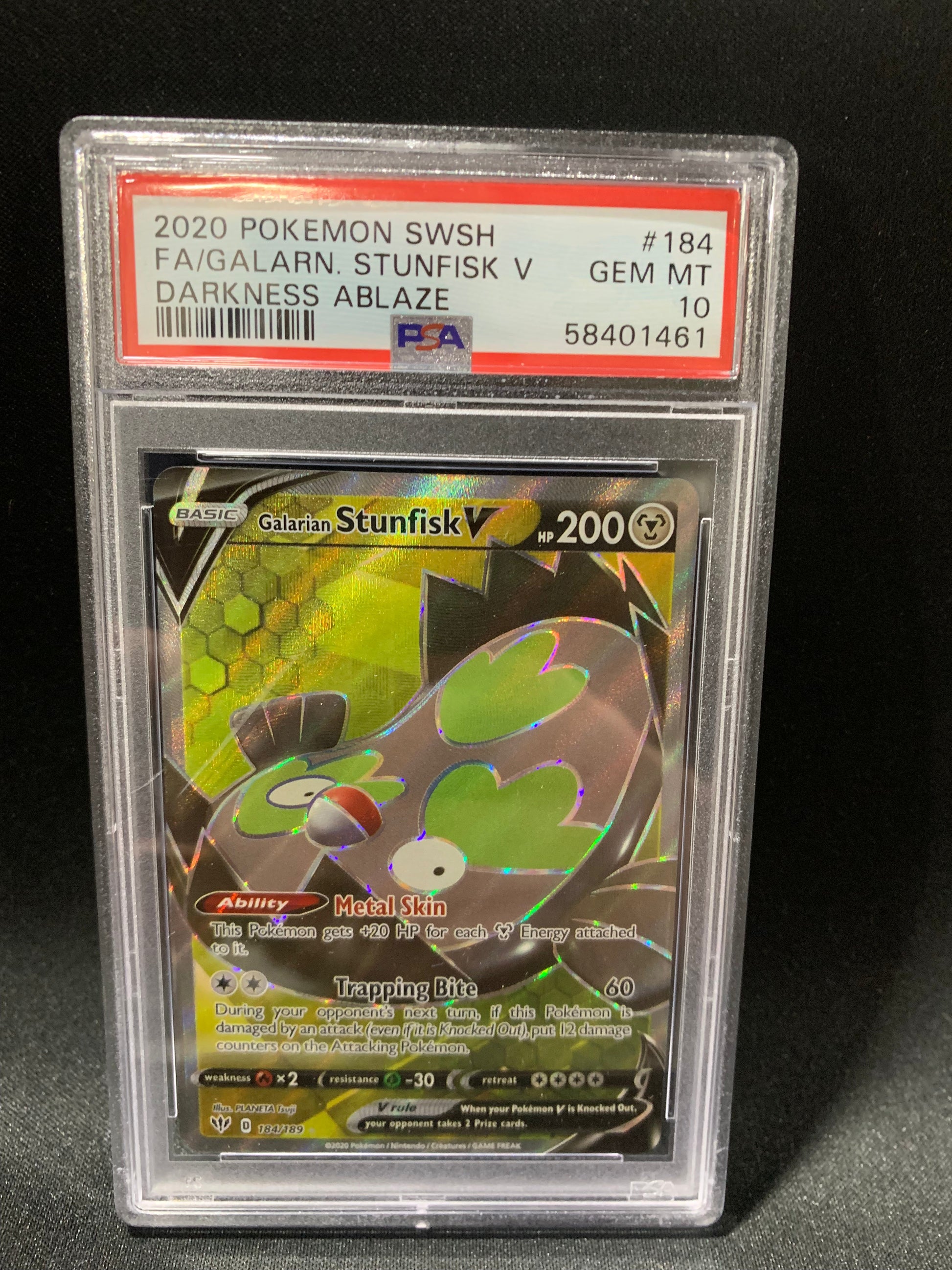 2020 POKEMON SWORD & SHIELD DARKNESS ABLAZE FA/GALARN. STUNFISK V #184 - PSA GEM MT 10
