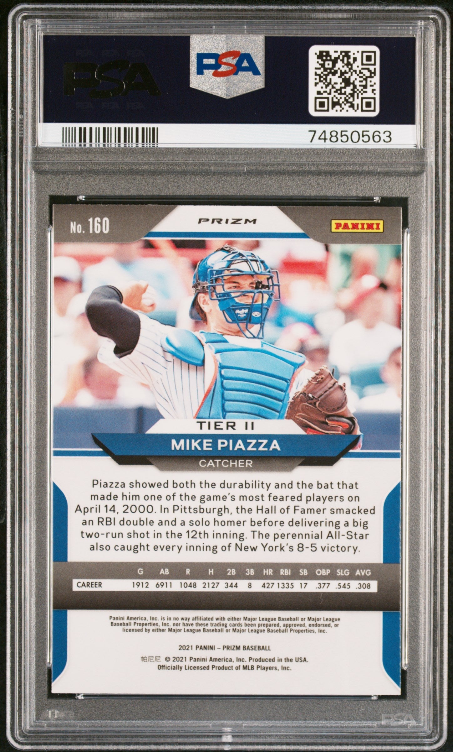 2021 PANINI PRIZM MIKE PIAZZA RED/WHITE/BLUE PRIZM #160 - PSA 10