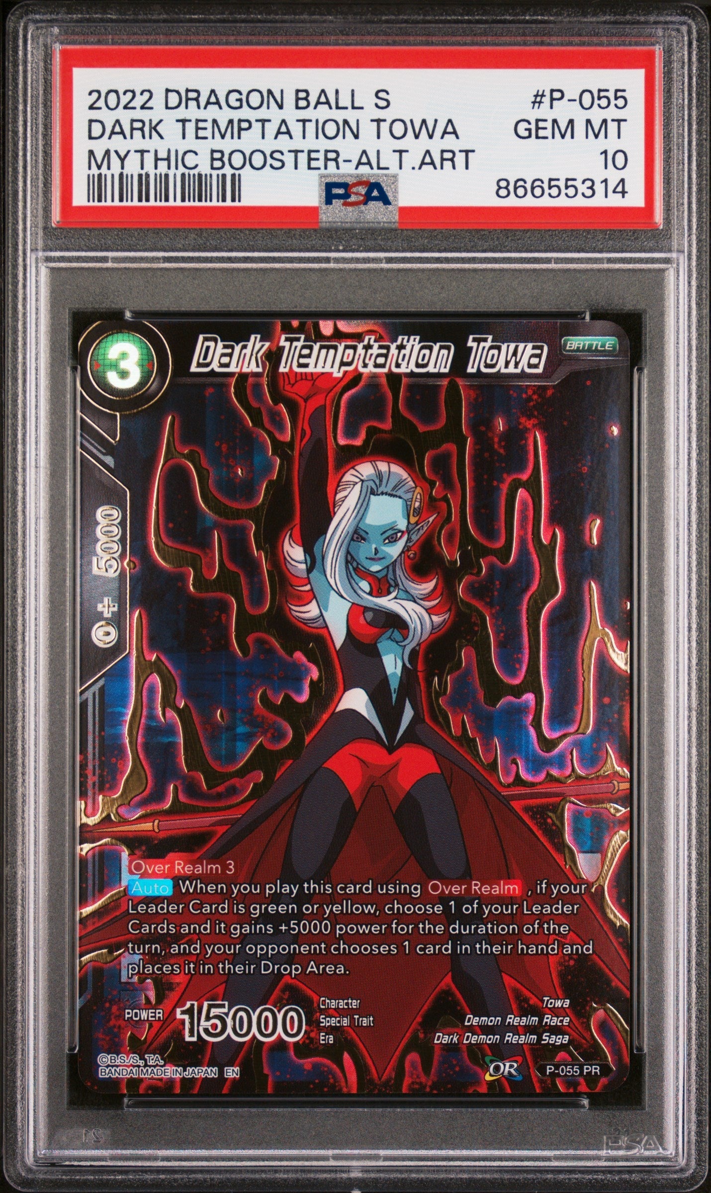 2022 DRAGON BALL SUPER MYTHIC BOOSTER DARK TEMPTATION TOWA #P-055 - PSA 10