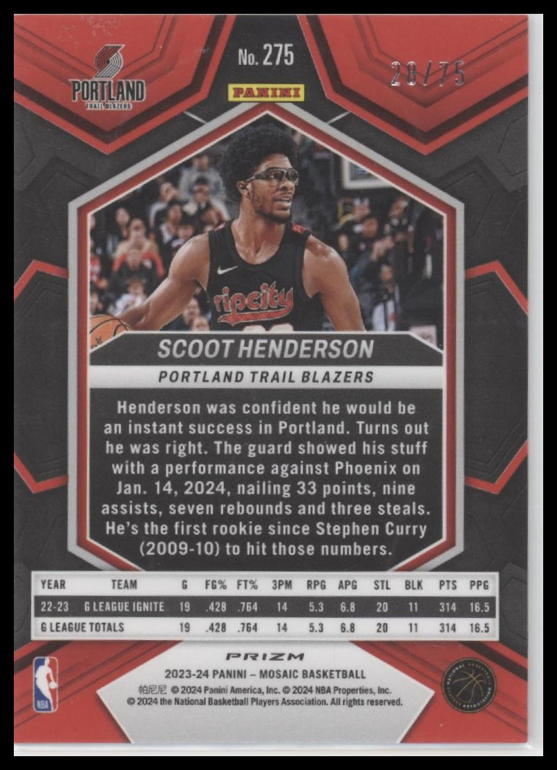 2023-24 Panini Mosaic CE Choice Fusion Red & Yellow Scoot Henderson #/75 #275