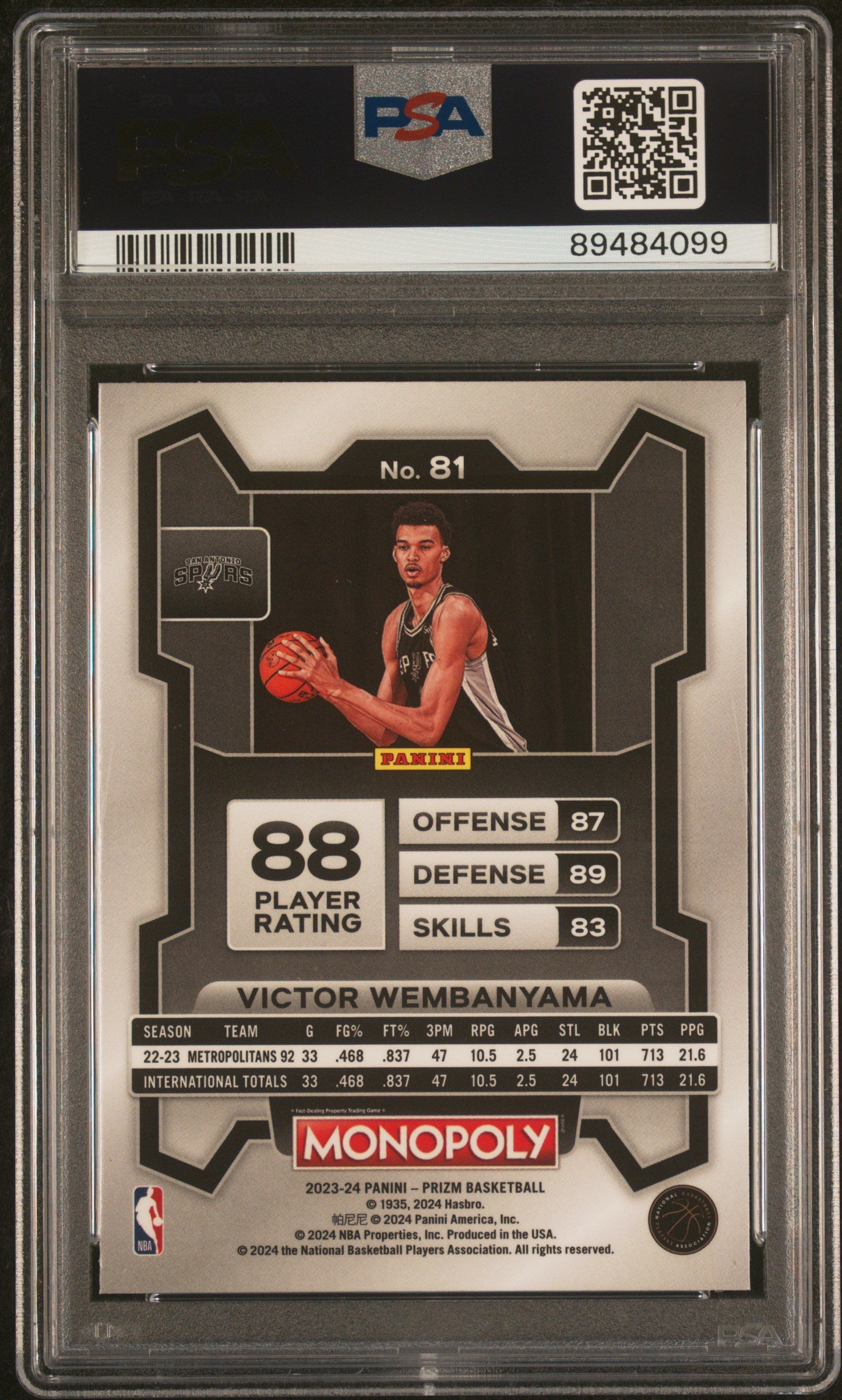 2023 Panini Prizm Monopoly Victor Wembanyama 9 PSA #81