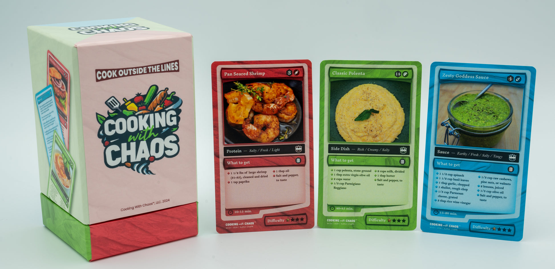 Cooking with Chaos includes 60 REAL recipe cards; 20 proteins, 20 sides,