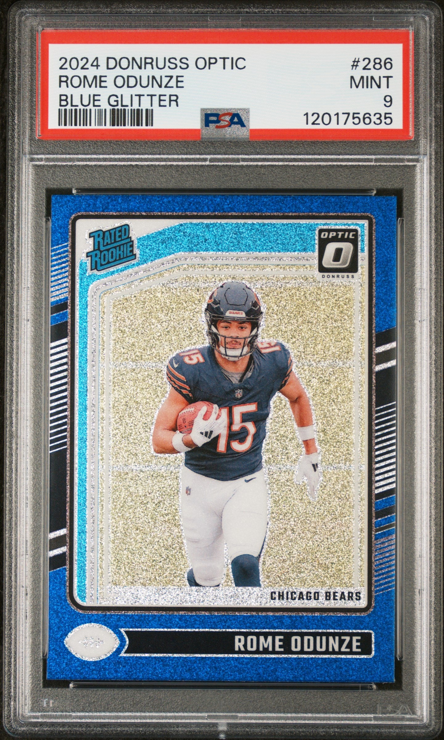 Rome Odunze 2024 Panini Donruss Optic #286 Blue Glitter PSA 9