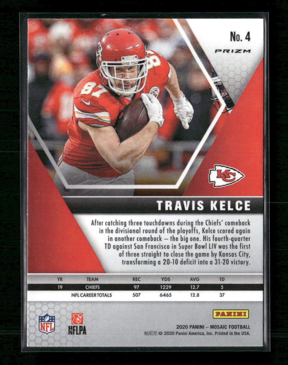 Travis Kelce 2020 Panini Mosaic #4 Prizm Genesis