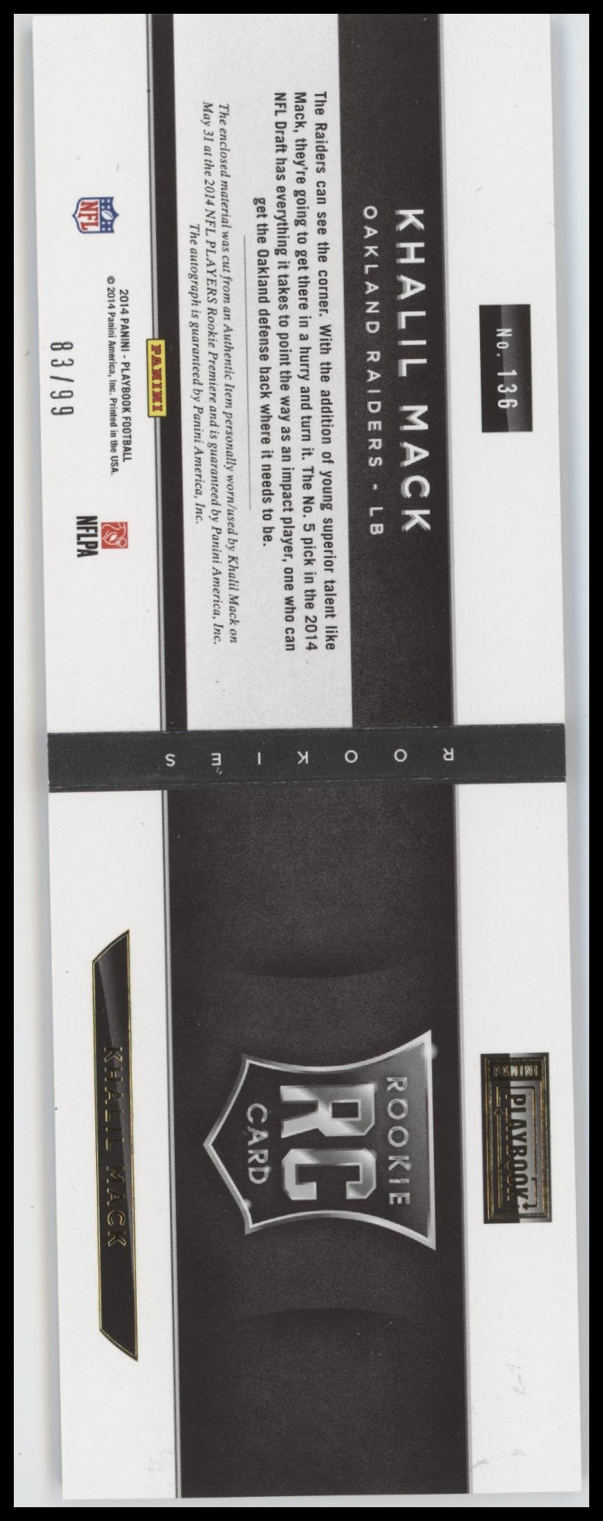 2014 Panini Playbook Rookies Booklet Sig Gold Khalil Mack Rookie #/99 Auto #136