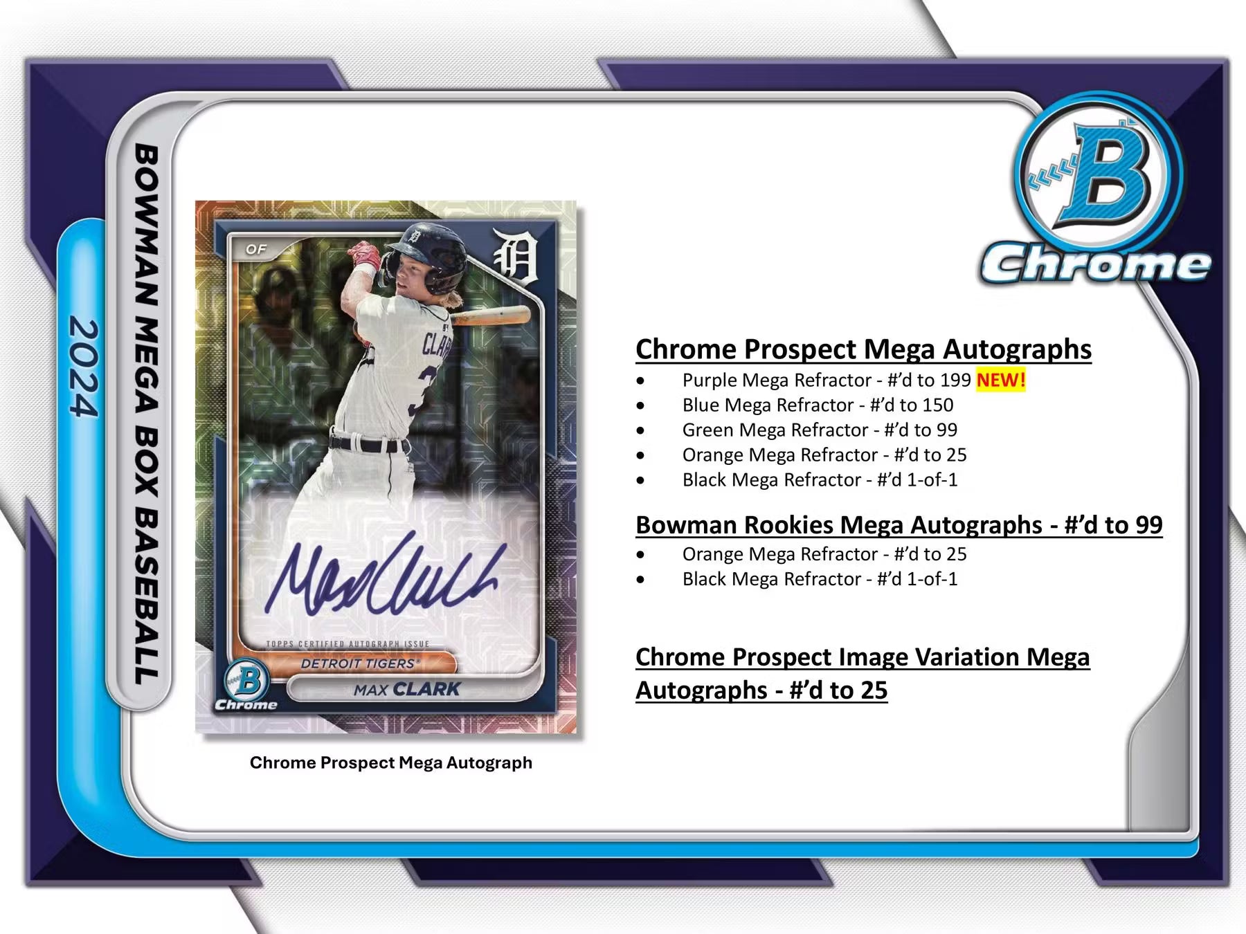Gear up as 2024 Bowman Mega Box bursts onto the scene, featuring the top-100 Base Set and Chrome Prospect cards from the 2024 Bowman Baseball on exclusive Mega Chrome pattern!