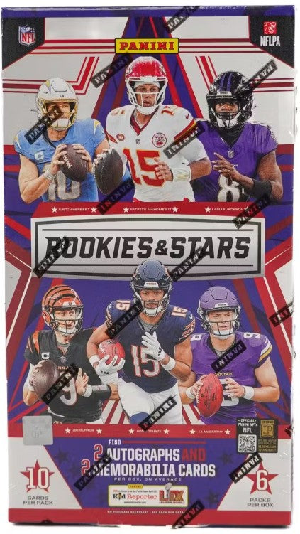From current stars to the most potential-packed newcomers, 2024 Rookies & Stars Football packs a punch with powerful autograph-memorabilia combinations and chase-worthy inserts.