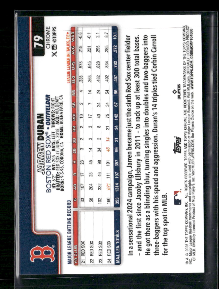 Jarren Duran 2025 #79 Topps Chrome Orange Refractors #/25