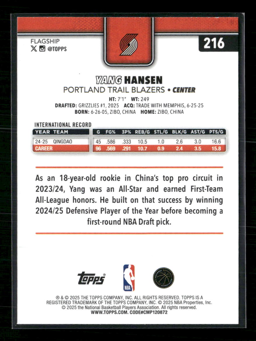 Yang Hansen 2025-26 #216 Topps Diamante Rookie